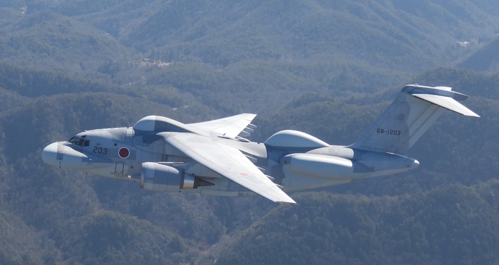 El avión de interferencia de largo alcance de Japón EC-2, vuela por primera vez.