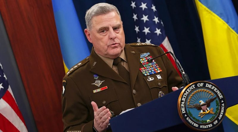 Milley y el secretario de Defensa, Lloyd Austin, hablaron con los periodistas, durante una rueda de prensa del Pentágono el miércoles, tras la última reunión del Grupo de Contacto de Defensa de Ucrania. Milley estaba respondiendo a preguntas sobre sus comentarios de la semana pasada en Nueva York de que «tiene que haber un reconocimiento mutuo de que la victoria militar es probablemente en el verdadero sentido de la palabra puede no ser alcanzable a través de medios militares, y por lo tanto hay que recurrir a otros medios». Esas declaraciones causaron una gran consternación en Ucrania, obligando a los funcionarios estadounidenses a asegurar a sus homólogos que seguirían apoyando a Kiev.