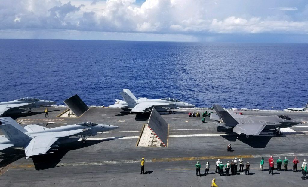 Horan añadió que los F-35Cs, que provenían tanto del Escuadrón de Cazas Strike (VFA) 125 como del VFA-147, un escuadrón de reemplazo de flota F-35C y un escuadrón operativo, respectivamente, de la Estación Aérea Naval de Lemoore, California, no sólo se estaban lanzando y recuperando, sino también, «llevando a cabo misiones que harían en combate, si fuera necesario.