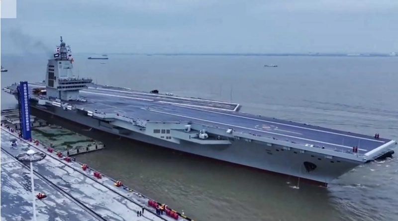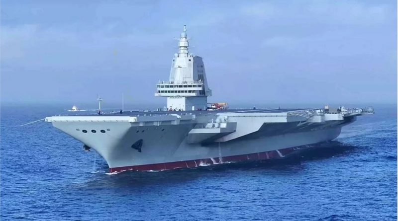 El nuevo portaaviones chino, Fujian, probado cerca de Taiwán en medio de crecientes tensiones.