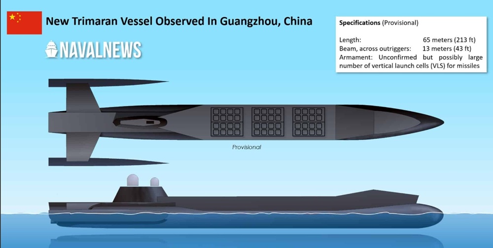 China’s proposed trimaran unmanned, semisubmersible arsenal ship.